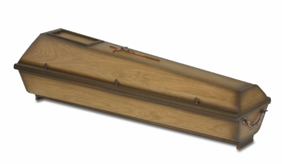 Modell Nr. 120Erdbestattungssarg Reform in Eiche auf Pappel Multiplex furniert und Fichte massiv, patiniert, Natur lackiert mit Zierschrauben, Beschlag 1900AK, Schieber, Sargkreuz und Möbeleckfüssen