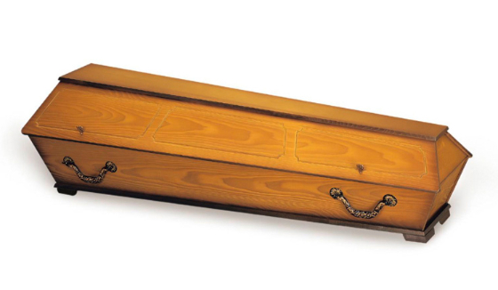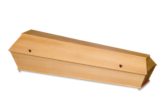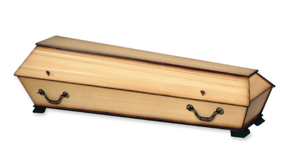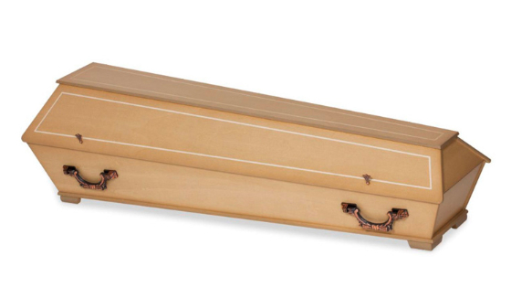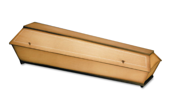 Modell Nr. 125Erdbestattungssarg in Pappel Multiplex, gebeizt, Natur lackiert mit Ziernute II, Zierschrauben, Beschlag 1900AK und Möbeleckfüssen