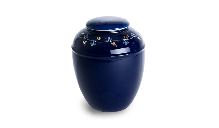 Keramikurne rund in Königsblau, Handbemalt